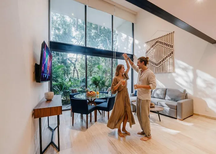 A Tulum tengerpartja hozzávetőlegesen 2 km-re, az A végzet temploma pedig autóval csaknem 10 méterre helyezkedik el a 65 m²-es Boho Style Loft In Mistiq Temple 2 Apartman Tulum.